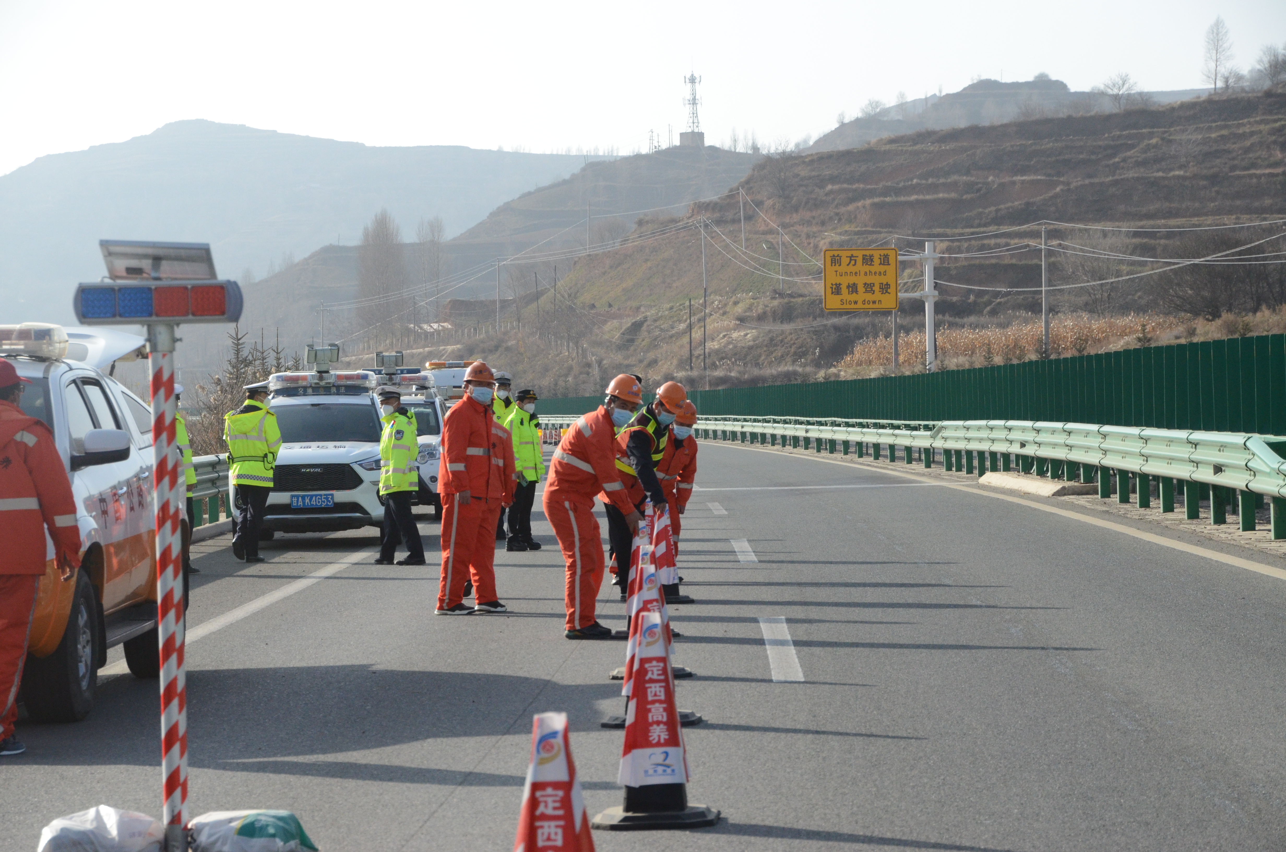 11月18日,定西高养所与辖区“一路四方”联勤联动单位渭源莲峰高速公路交警大队、陇西高速公路路政执法大队、渭源高速公路管理所等联合举行“2022年抢险保畅应急演练”。 新定西·定西日报记者 崔桓 通讯员 张瑜玮 摄影报道