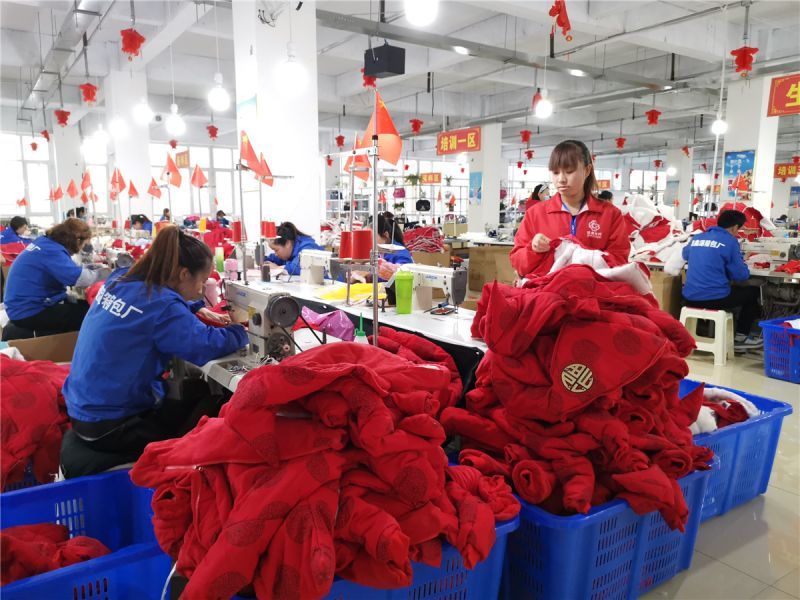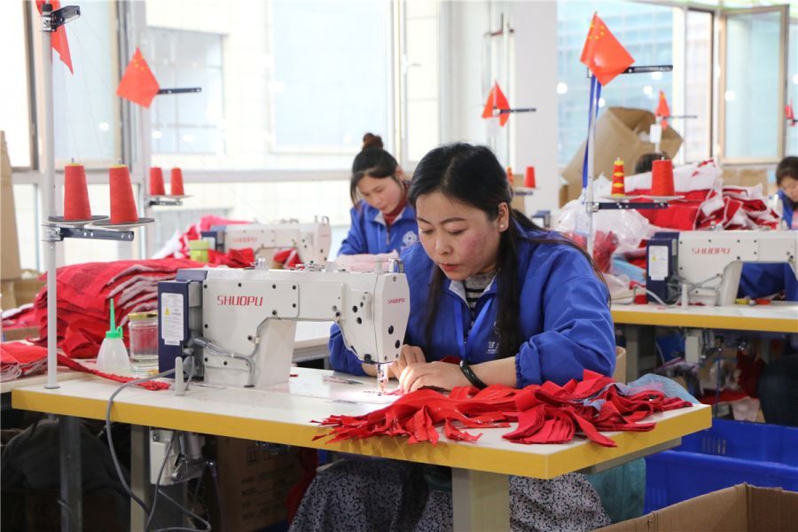 陇西县首阳镇晨鑫源制造有限公司是由当地大学生创办的扶贫车间,通过“送岗上门、就近就业”的模式,充分将农村闲散劳动力变成产业工人,为136名陪读家长打造了“陪读家长”生产线,每位工人每月最低工资可达到2500元,熟练工最高可达4500元。图为城关分公司生产车间现场。本报记者 王霞飞 摄影报道