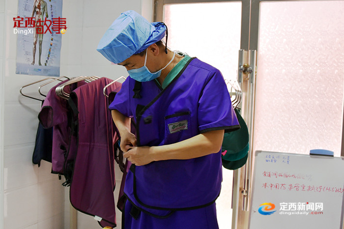5/10 周杰尚:兰大二院定西医院心脏中心主任医师,在全市率先独立开展了永久性心脏起搏器植入术、床旁临时心脏起搏术、冠状动脉造影术、冠状动脉球囊扩张加支架植入术、心包穿刺置管引流术、急性心肌梗死等的急诊冠脉介入治疗。每次手术,他都要负担40斤左右的铅制隔离设备,一台手术下来就会汗流浃背。若在炎热的夏季, 或者手术量增多,对医生的体力更是相当大的考验。
