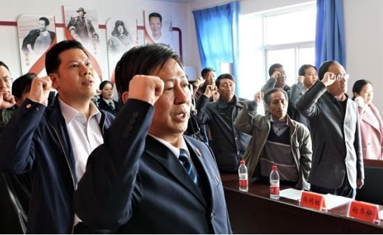 在中铁兰州局集团公司陇西货运营业部党支部与甘肃陇西县渭阳乡本驮村党支部联合组织的联建扶贫主题党日活动中,雄壮的《国际歌》再次响彻,党旗前举右拳重温庄严誓词,认真观看品味微党课“弘扬长征精神,勇于担当使命”……