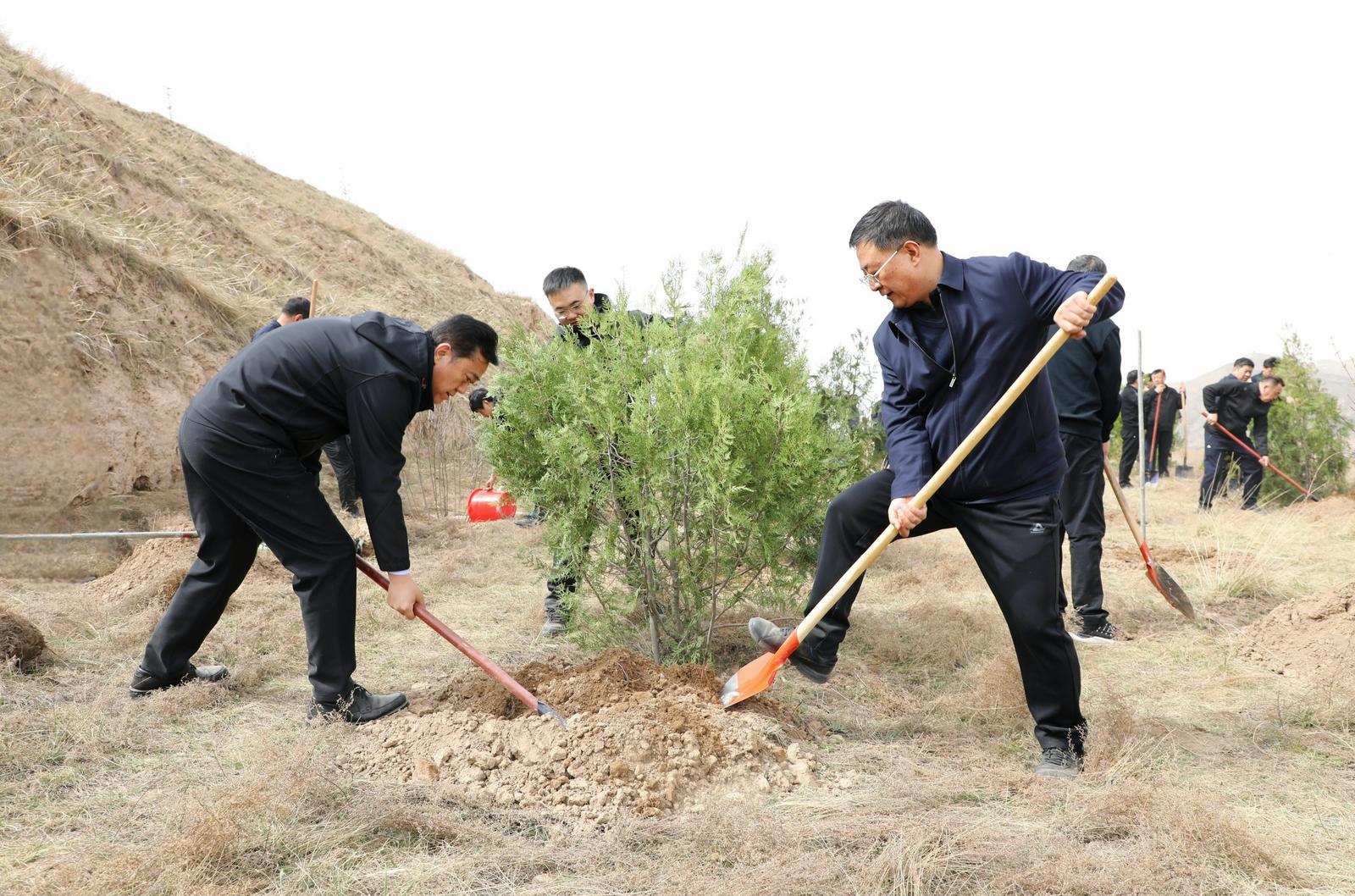 会后,汪尚学、武和谦、温卫东、高永平、黄欣等市四大班子在家领导来到安定区凤翔镇南二十铺村古雁坪山,与市区机关单位干部职工一起参加春季义务植树活动。