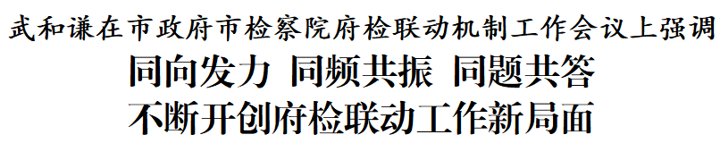 武和谦强调,要在联动机制上再深化、再拓展,充分发挥法治固根本、稳预期、利长远的保障作用,进一步健全清单化管理、规范化衔接、刚性化督办和数智化增效等机制,以精细化机制保障常态化运行,促进府检联动工作往深里走、往细处落。要在联动重点上再聚焦、再精准,结合开展树立和践行正确政绩观学习教育,坚持为发展服务、为人民司法、为稳定护航,深入开展营商环境创一流行动,合力打好整治群众身边不正之风和腐败问题攻坚战,纵深推进主动创安主动创稳行动,为更好服务全市高质量追赶发展和现代化建设助力赋能。要在联动责任上再靠实、再发力,牢固树立全市“一盘棋”思想,既各司其职、各尽其责,又同向发力、同频共振,全面构建政府依法行政与检察法律监督有机统一、良性互动的工作格局。