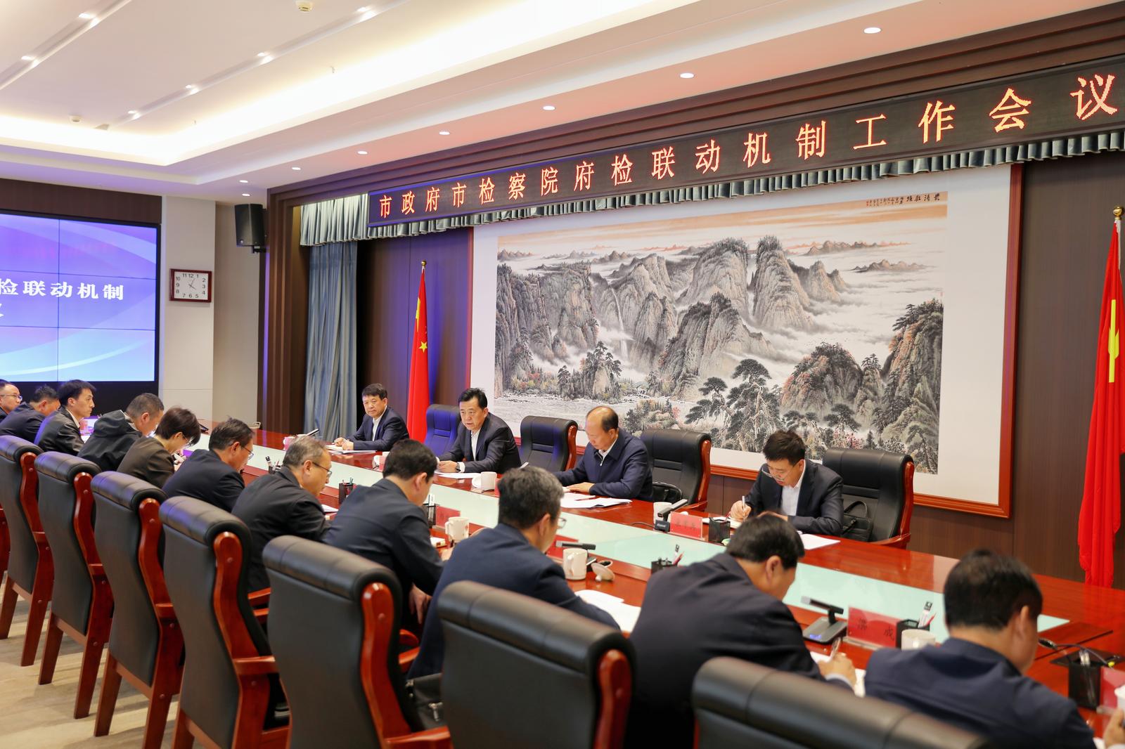 新定西讯 4月13日下午,市政府、市检察院“府检联动”机制工作会议召开,市委副书记、市长武和谦出席并讲话。他强调,要深入贯彻习近平法治思想,全面落实省政府、省检察院“府检联动”机制工作会议精神,同向发力、同频共振、同题共答,加力推动联动工作从“有”向“好”向“优”转变,不断开创“府检联动”工作新局面。