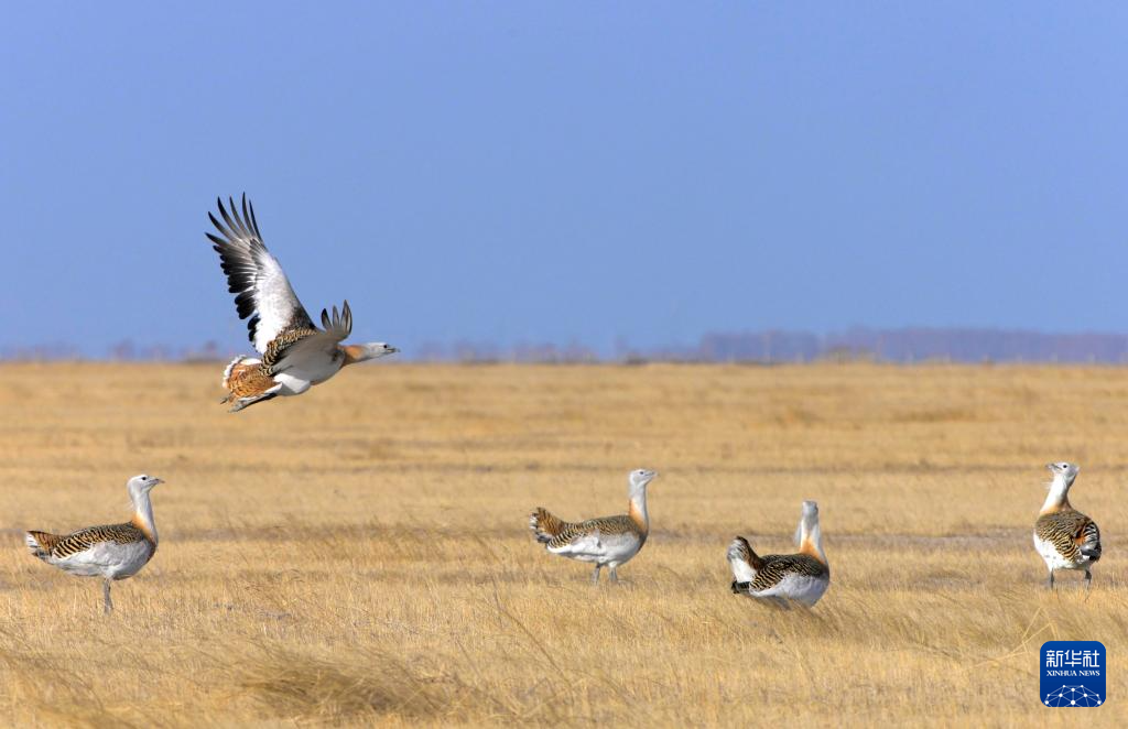 近日,国家一级保护动物大鸨现身黑龙江省林甸县的草原。大鸨是鹤形目鸨科大型地栖鸟类,主要栖息于开阔的平原、干旱草原、稀树草原和半荒漠地区,被列入《世界自然保护联盟濒危物种红色名录》和《中国濒危动物红皮书》。