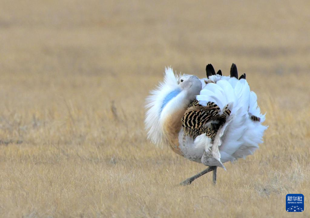 这是4月13日在黑龙江省林甸县一处草原拍摄的国家一级保护动物大鸨。