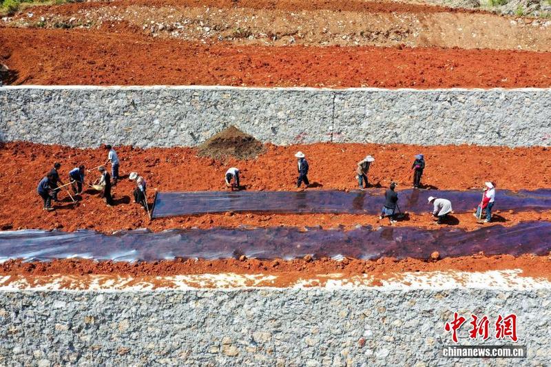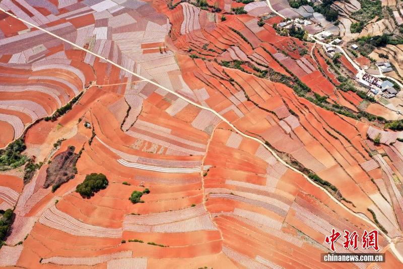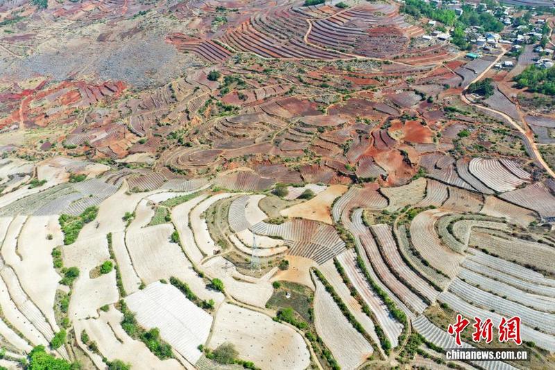 连日来,贵州省毕节市威宁彝族回族苗族自治县广袤的田野间,农户们抢抓农时进行春耕春播,农田纹理有致,犹如大地“指纹”,蔚为壮观。图为4月13日,航拍威宁自治县迤那镇双营村春耕农田。