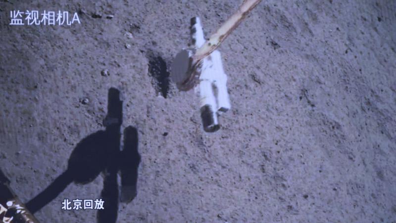 2024年6月4日7时38分,嫦娥六号上升器携带月球样品自月球背面起飞,随后成功进入预定环月轨道。嫦娥六号完成世界首次月球背面采样和起飞。这是当日在北京航天飞行控制中心屏幕上拍摄的嫦娥六号取样回放画面。新华社记者 金立旺 摄